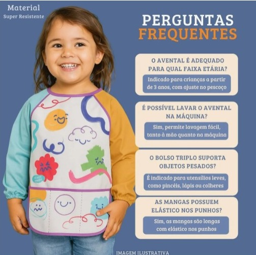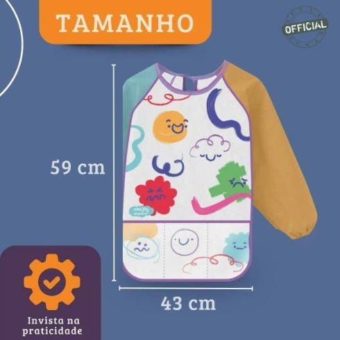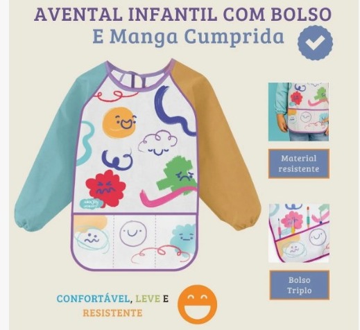– Produto: Avental Infantil com Manga Comprida e Bolso com 3 Divisórias